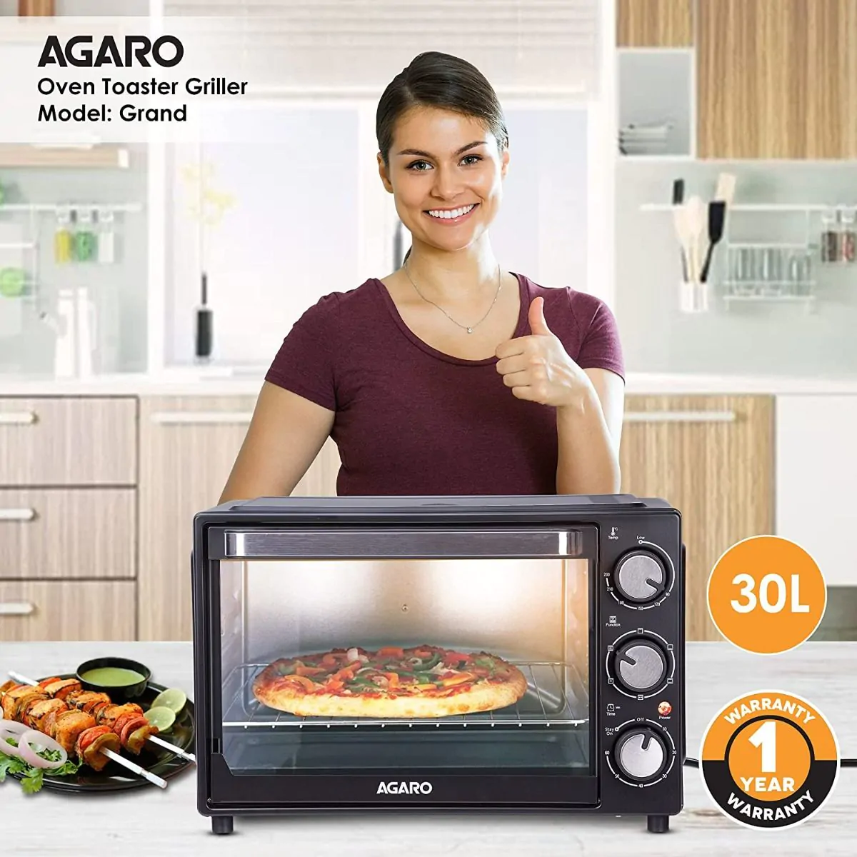 25L Capacity - 5 Heating Modes - Adjustable temperature from 100?C to 250?C - Motorized rotisserie with forks - 60 Mins timer - 1280 Watts - Includes Bake Pan, Rotisserie Rod, Rotisserie handle, Tray Handle - 1 Year Warranty